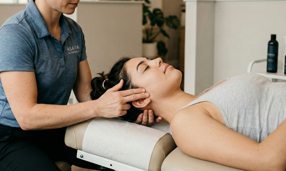 Asana Physiotherapy provides specialized physiotherapy, including internal and external manual techniques, dry needling, and posture correction exercises, to treat Temporomandibular Joint (TMJ) disorders.